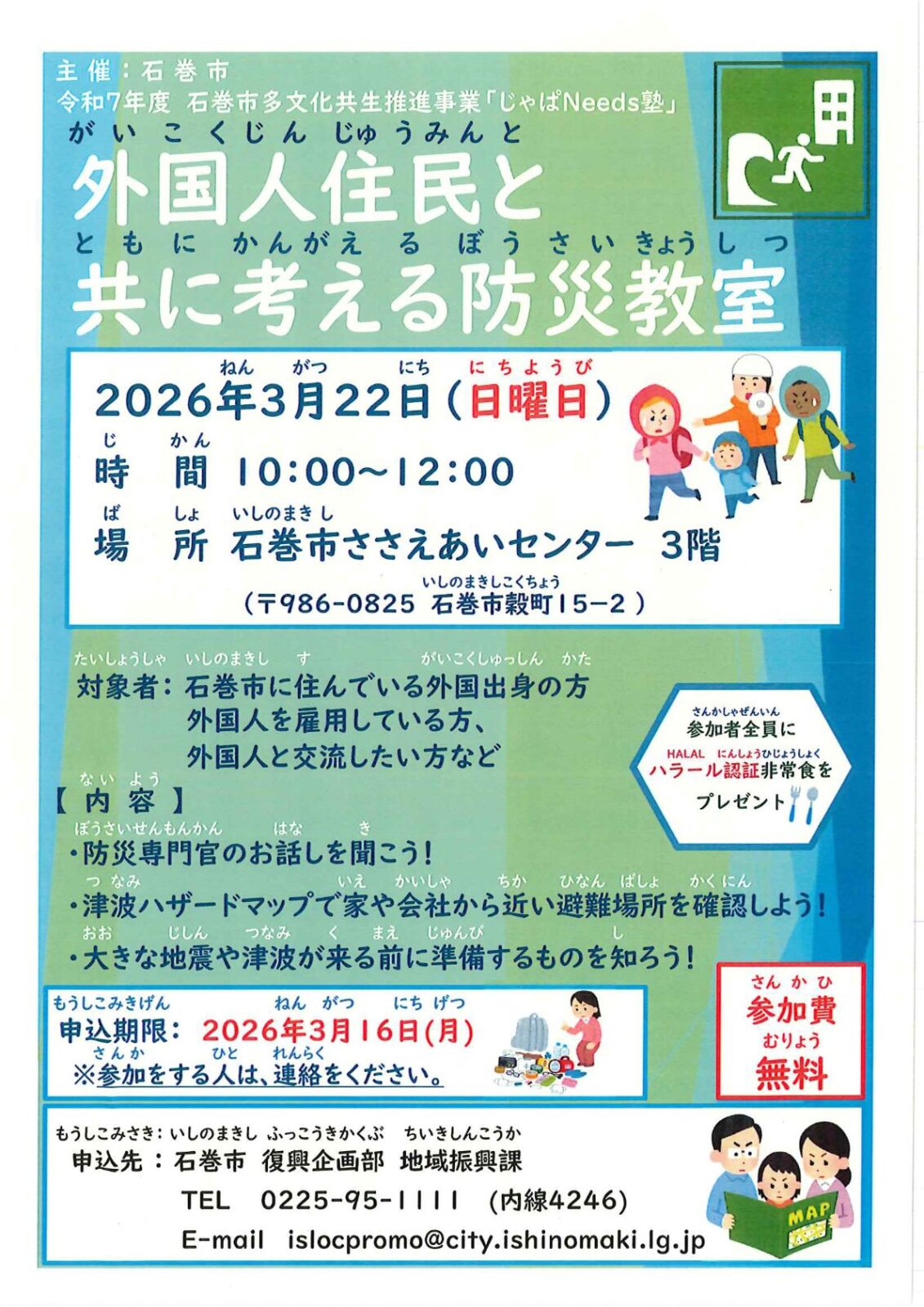 外国人住民と共に考える防災教室|令和7年度石巻市多文化共生推進事業じゃぱneed塾