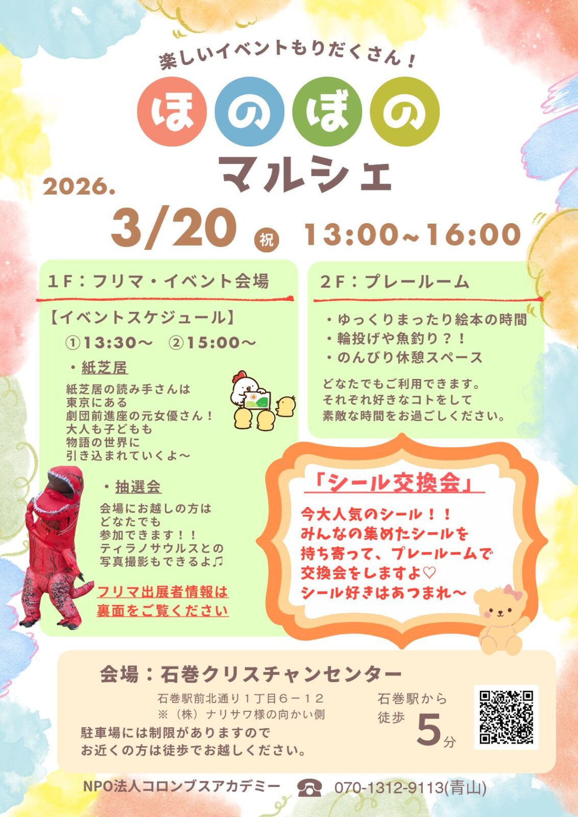 楽しいイベントが盛りだくさんのほのぼのマルシェ。フリマやプレールーム、シール交換会など、家族みんなで楽しめるイベントです。