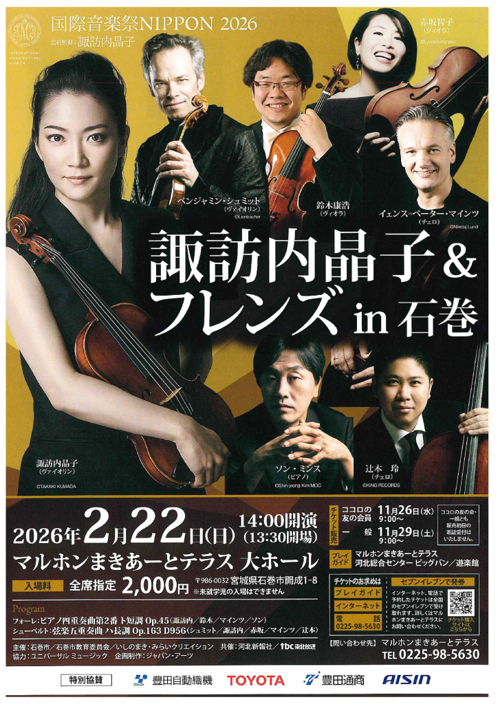 国際音楽祭NIPPON 2026 芸術監督 諏訪内晶子とフレンズによる演奏会